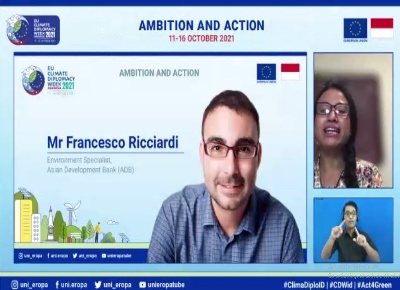 Pembicara pertama, Francesco Ricciardi, Environment Specialist, Asian Development Bank (ADB) membahas, hubungan konservasi keanekaragaman hayati terhadap pengurangan risiko pandemi di masa depan.