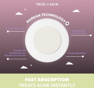 True To Skin Ready Acne Gone! Pimple Patch diformulasikan dari bahan Hydrocolloid yang dapat mempercepat proses penyembuhan jerawat. Patch jerawat True to Skin memiliki sifat menyerap cairan kotoran atau nanah dari jerawat. Pemakaian Patch Jerawat disarankan juga untuk mencegah adanya infeksi pada jerawat dan mempercepat proses penyembuhan jerawat.