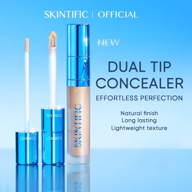 SKINTIFIC juga memperkenalkan concealer yang hadir pertama kali dengan fitur dual aplikator inovatif: micro-tip untuk aplikasi presisi pada area spot dan hybrid-tip untuk area bawah mata, memberikan hasil aplikasi yang optimal dan mudah di seluruh area wajah. Diperkuat dengan teknologi Dual Film Formation, concealer ini memastikan coverage tetap tahan lama tanpa luntur, bahkan setelah dipakai selama 8 jam.