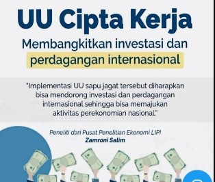 Salah satu upaya tersebut adalah dengan menginisiasi Undang-Undang Cipta Kerja yang mampu meringkas regulasi sekaligus mampu mendorong pertumbuhan ekonomi.